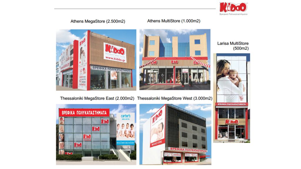 Τα KIDDO Megastores + Multistores έχουν μια κοινή υψηλή αισθητική, τόσο εξωτερικά, όσο και εσωτερικά των Πολυκαταστημάτων τους, με διακοσμητική γραμμή και ύφος το οικολογικό ανακυκλώσιμο ξύλο. Τα 2 νεότερα σημεία, αυτά της Θεσσαλονίκης (East) και του Αλίμου, είναι η επιτομή ενός φρέσκου και εκσυγχρονισμένου Concept Βρεφικών Boutique/ Πολυκαταστημάτων Νέας Γενιάς, που τα διακρίνει η λιτή Πολυτέλεια (Βλέπε Ξύλο) με ξεχωριστή παρουσίαση των διαφορετικών προϊοντικών κατηγοριών και με διαχωρισμό των αποκλειστικών οίκων του εξωτερικού (Brands), τα οποία τα KIDDO αντιπροσωπεύουν σε Ελλάδα, Κύπρο και Βαλκάνια. Η διαφοροποίηση από τα λοιπά καταστήματα του ανταγωνισμού, τόσο στο ύφος και την αισθητική, όσο και στα Brands και στα προϊόντα, καθώς και οι μοναδικές ασυναγώνιστες τιμές (απευθείας τιμές από τα εργοστάσια προς τους τελικούς καταναλωτές χωρίς μεσάζοντες, εξτρά προμήθειες και υπεραξίες), καθιστούν τα KIDDO καταστήματα ως TOP Destination/ Προορισμό για εγκυμονούσες και νέους γονείς.